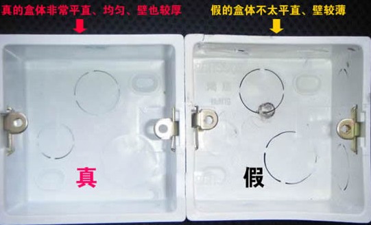 線盒底部有個像體育場形式的凹槽,真的線盒凹槽有兩個臺階,假的沒有。