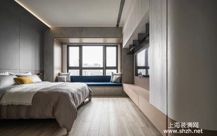 空間寬裕,就可以把電視柜當(dāng)做補(bǔ)充收納的主力軍。 推薦方案:一體化定制柜或**“回”字形滿墻柜**。