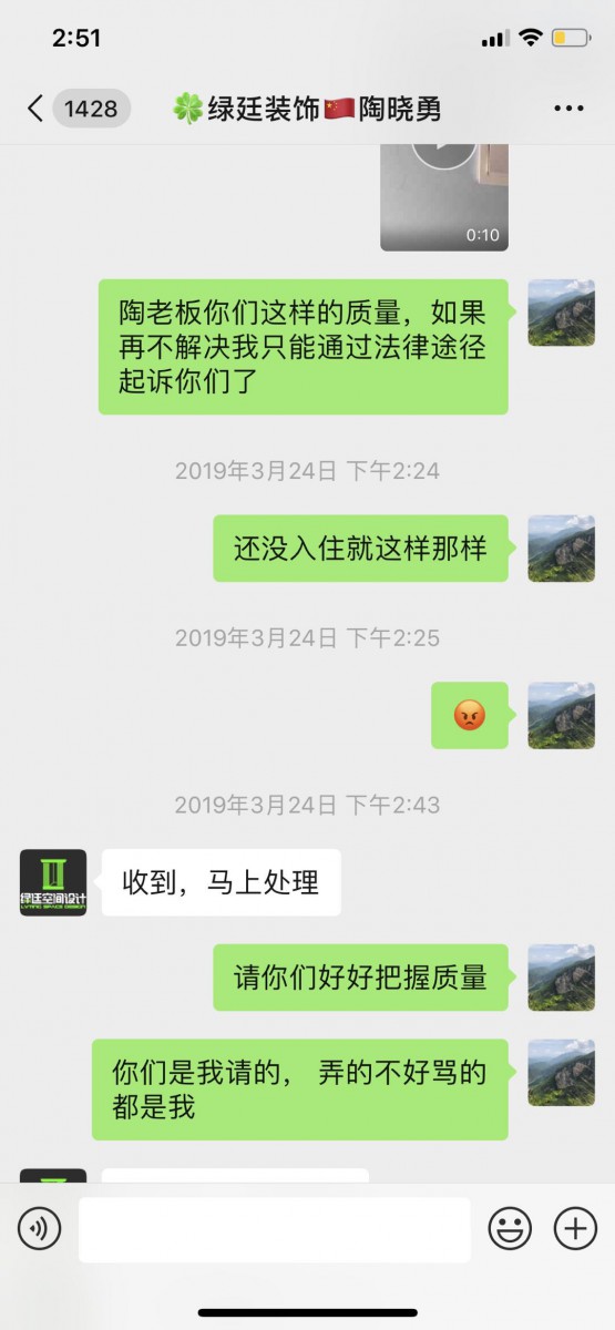 | 投訴類型 | 施工質(zhì)量 | 投訴人 | 廖** | 被投訴單位 | 上海綠廷裝飾設(shè)計(jì)工程有限公司 |