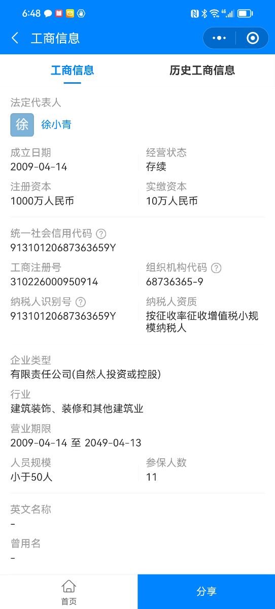 | 統(tǒng)一社會(huì)信用代碼 | 91310120687363659Y | 投訴量 | 5次 查看 |