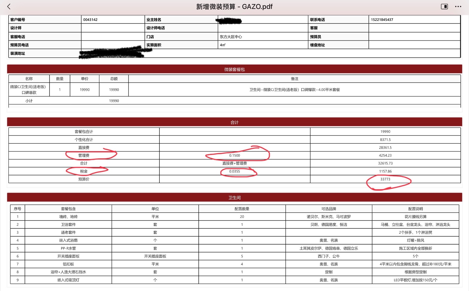 本人在開工前,全款支付的管理費(fèi)、稅金等裝修款列表