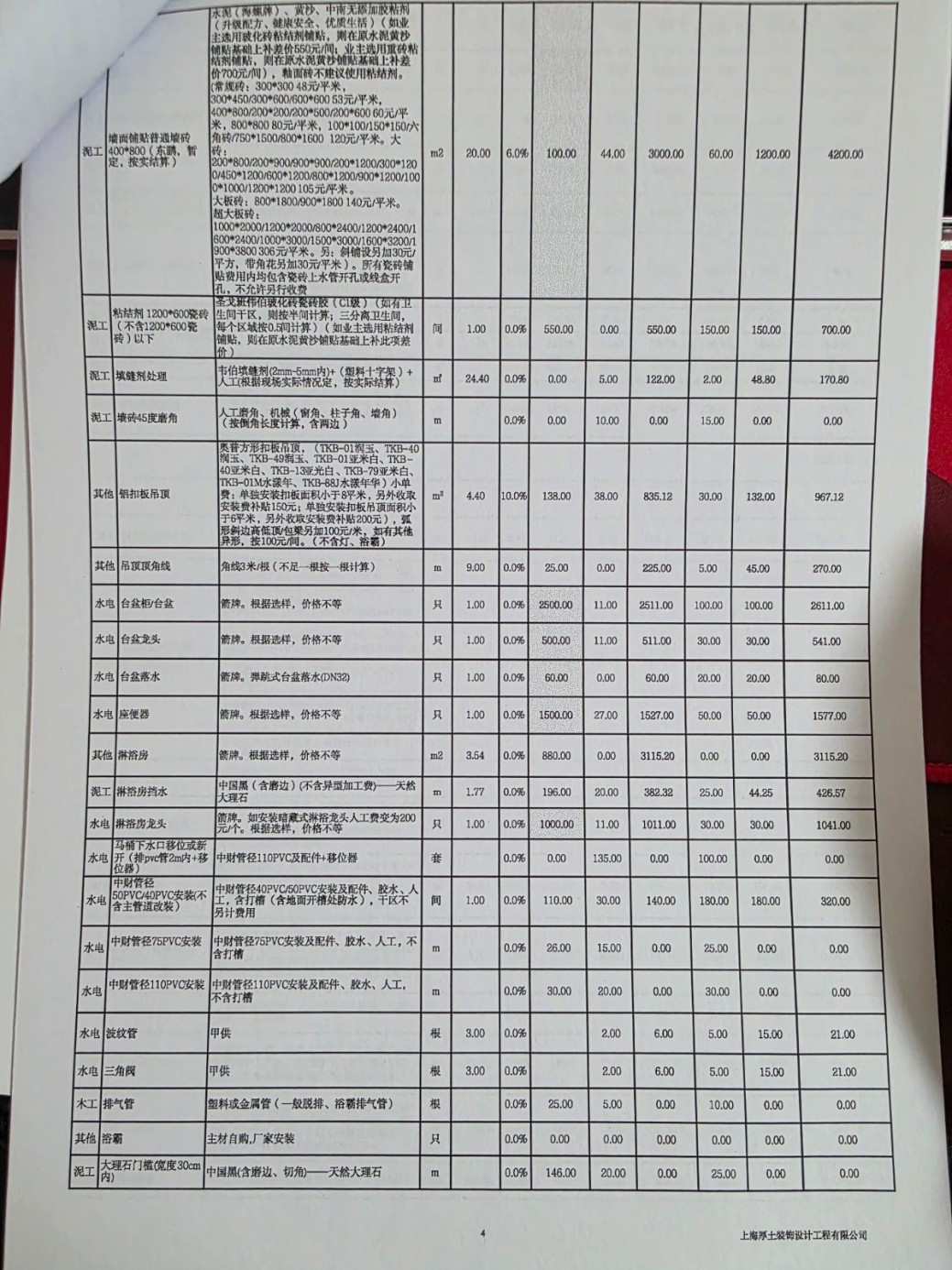 2.做之前宣傳自己零漏項(xiàng)不增項(xiàng),設(shè)計(jì)圖里畫的電視、壁掛洗衣機(jī)是預(yù)埋隱蔽管,做之前還特意確認(rèn)過,結(jié)果施工開始,施工隊(duì)長告訴我預(yù)算沒有,所以不做,做就要加錢。最搞笑的是,他們設(shè)計(jì)師自己都覺得是公司預(yù)算員漏項(xiàng),所謂的公司監(jiān)理告訴我,這個是業(yè)主要求的升級,預(yù)算里沒有,符合合同內(nèi)增項(xiàng)不超過5%的條款。還“好言相勸”我說,施工隊(duì)長干活是要賺錢的,房子是你住的,裝的好不好是施工隊(duì)長決定的。