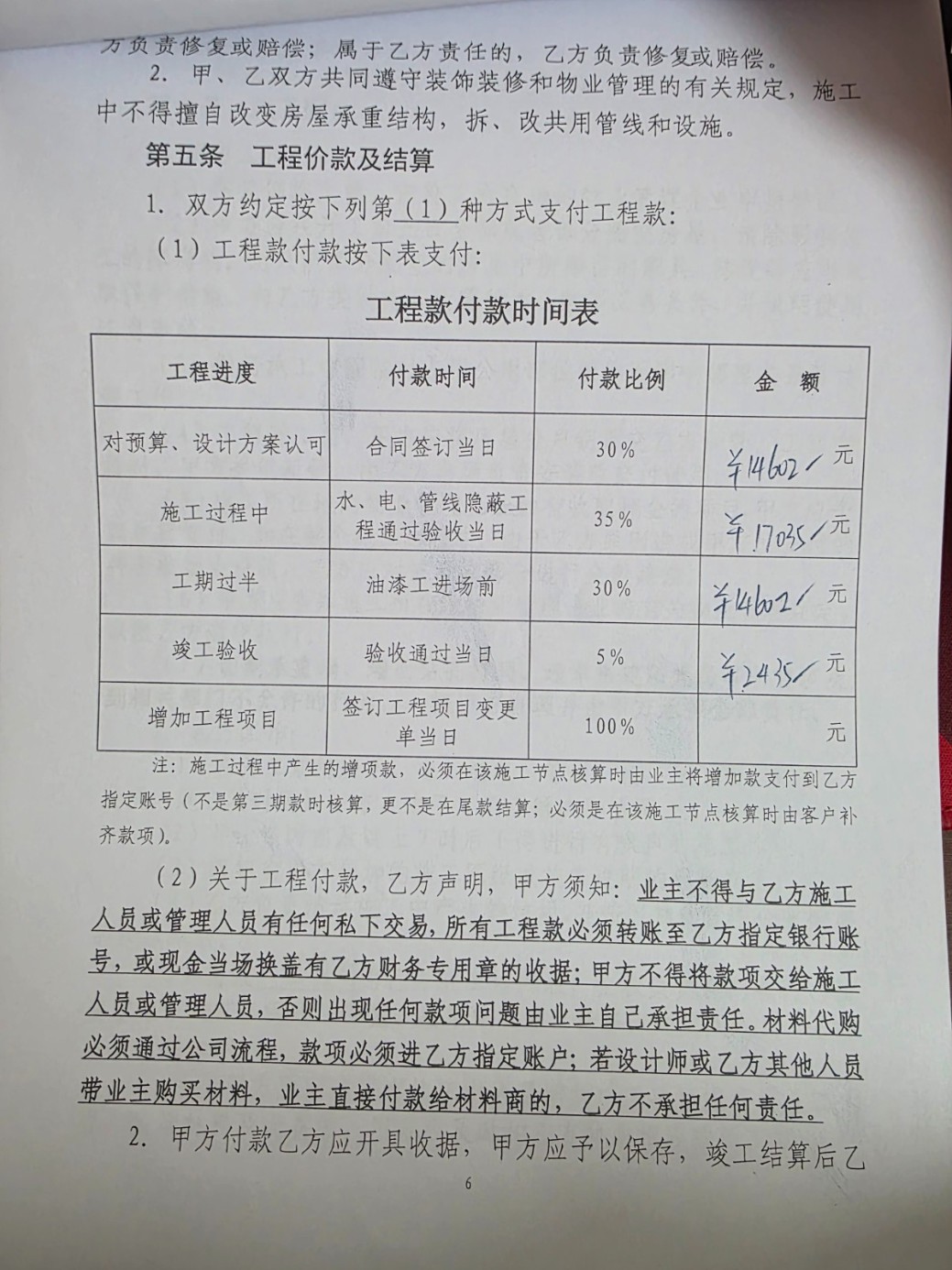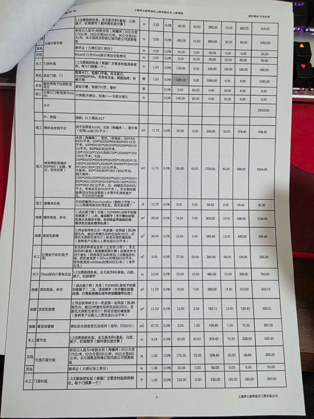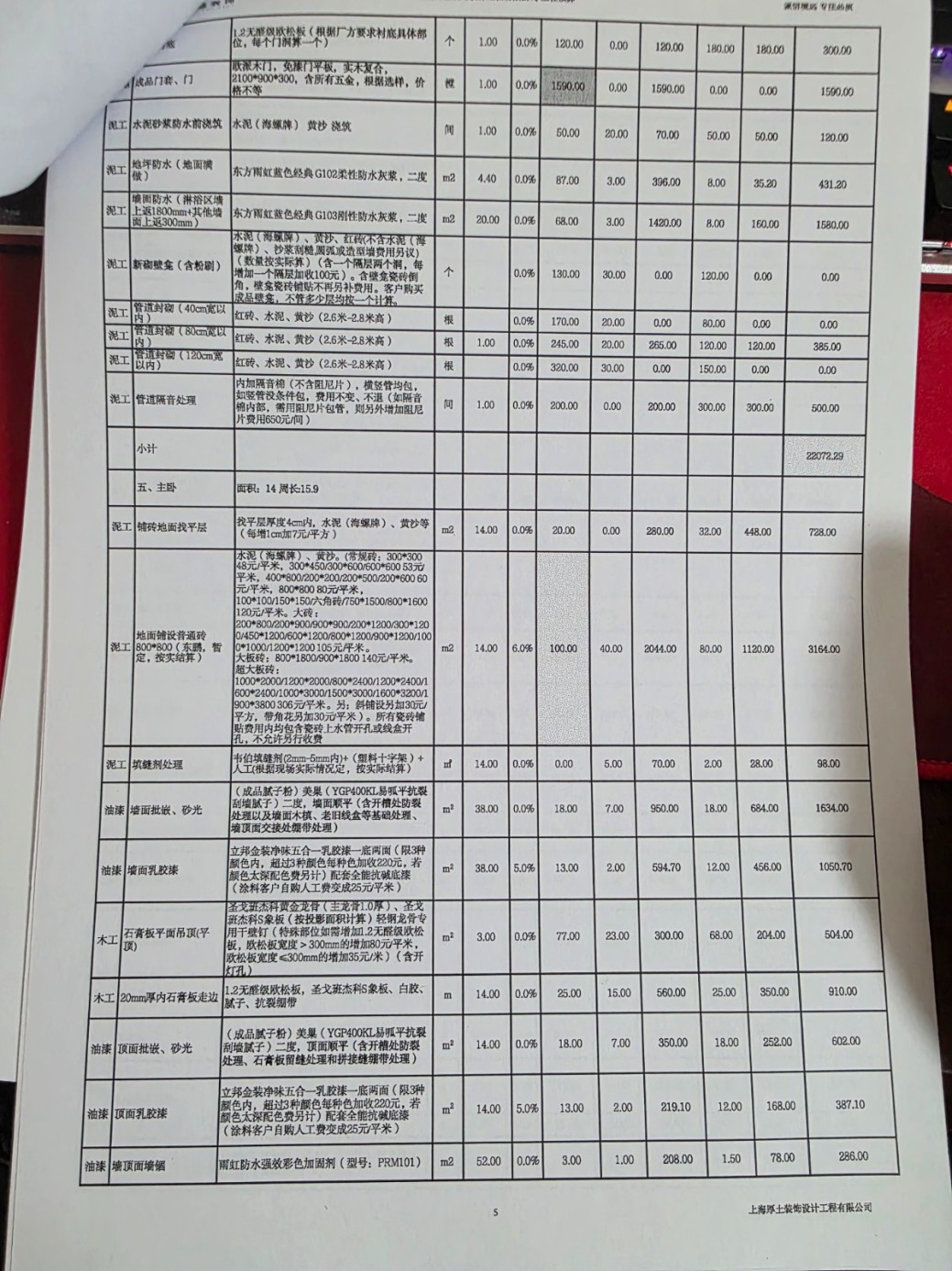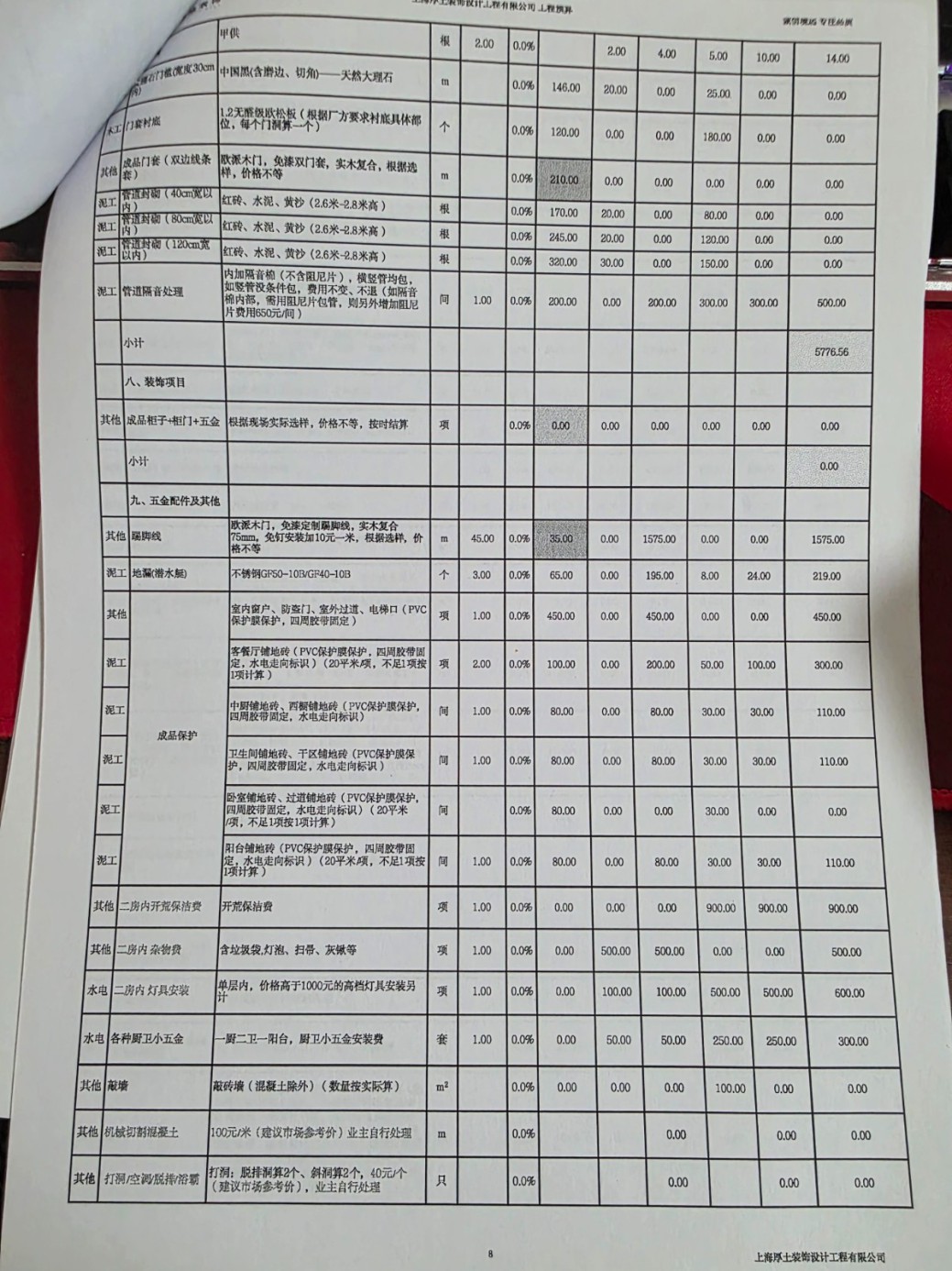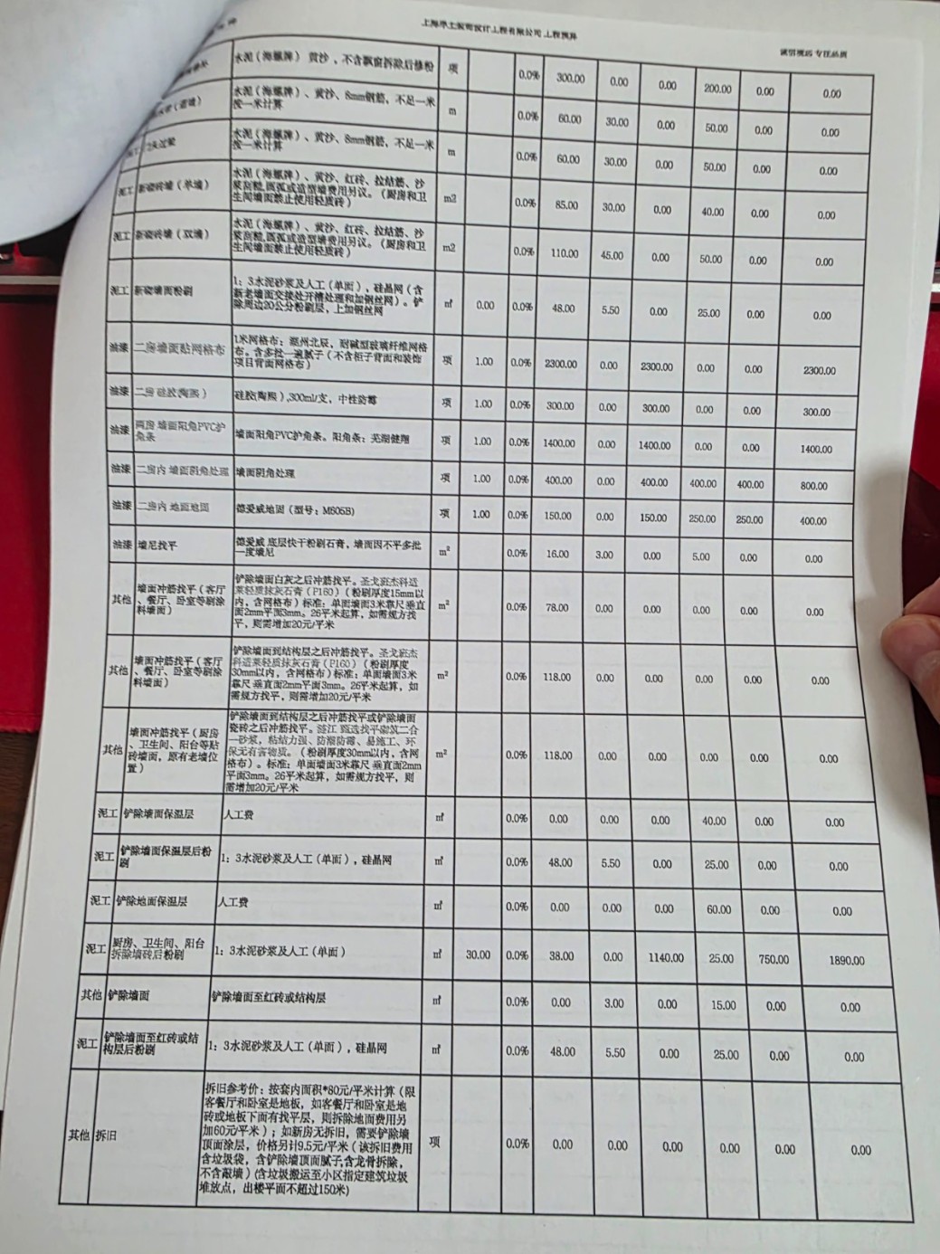 3.啥東西都要加錢、加錢、加錢,按照合同中寫的收費(fèi)項(xiàng)目,打洞40元/個,結(jié)果一上午全屋大大小小打了31個洞,要了我1240元,這也就算了。更離譜的是竟然還出現(xiàn)了補(bǔ)洞費(fèi)。31個洞補(bǔ)一個洞12塊,加上補(bǔ)原有的5個空調(diào)洞,用點(diǎn)水泥砂漿/發(fā)泡膠的補(bǔ)洞,要收我補(bǔ)洞費(fèi)400塊。后經(jīng)“友好協(xié)商”,打洞的31個洞就算了,施工隊(duì)長大發(fā)慈悲的給我免掉了,但原本房屋的5個洞沒理由免我的,他做的這個項(xiàng)目,就需要收這個費(fèi)用,總不能給我白干活。其他的離譜增項(xiàng)包括但不限于2.45米人工大理石擋水條1440元,鋪地暖前,坑洼的基層簡單修粉報(bào)價(jià)80元/平方,廚房餐廳的20平米找平收了1600+ ,問就是公司規(guī)定,合理合法收費(fèi)。