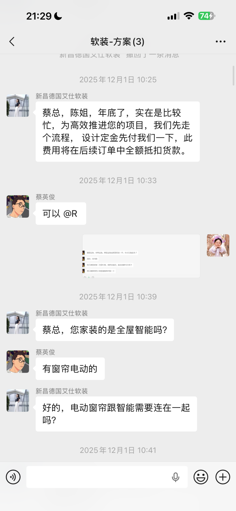 我們找了軟裝設(shè)計(jì)公司,老板也是想做我們這個(gè)單子纏著我許久,后面我們也是看她契而不舍,我們決定試試,她說是意向金要兩三萬出設(shè)計(jì)圖先,我們意思是意向就是意向,兩三千合理,出個(gè)設(shè)計(jì)圖看看先,后續(xù)抵扣貨款我們壓力也不太大。