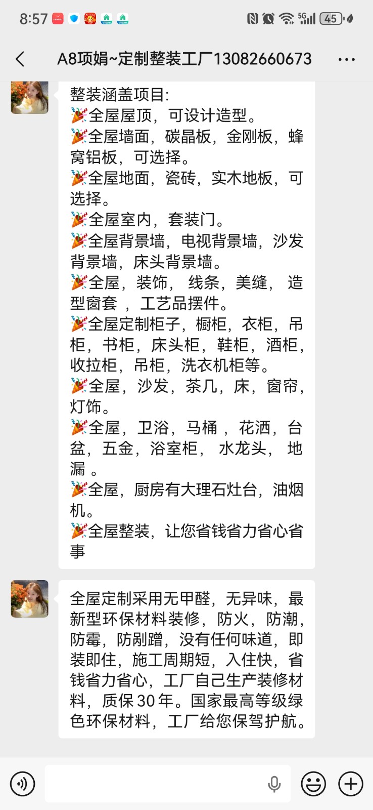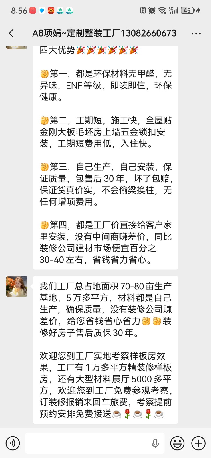尊敬的業(yè)主您好! 您投訴的山東快材裝飾材料有限公司,該企業(yè)非網(wǎng)絡(luò)監(jiān)督單位,您的投訴已受理請耐心等待! 并重視以下告知和提醒: 1.投訴業(yè)主請?zhí)砑油对V中心王老師微信(微信號13311711185),補(bǔ)充您的訴求證據(jù);并可以在工作日的上午9點-12點,下午14點-17點撥打以上電話。 2.被投訴的裝修企業(yè)請?zhí)砑油对V中心雷老師微信(微信號13501886065),望企業(yè)引起重視,注重企業(yè)形象,維護(hù)企業(yè)口碑。 3.投訴人和被投訴人請保持電話暢通和接聽電話,以便投訴處理老師及時聯(lián)系。 4.如您需要申請行業(yè)監(jiān)理委員會第三方監(jiān)理介入調(diào)解,請撥打投訴熱線400-118-8580。 樹立行業(yè)文明,建立公正權(quán)威,感謝您對上海裝潢網(wǎng)的信賴! 2026-01-12 10:47:20