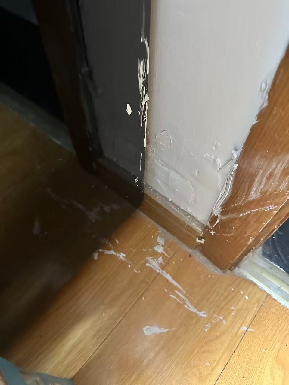 補(bǔ)墻刷漆,凹凸不平,涂料到處都是,技術(shù)不堪。