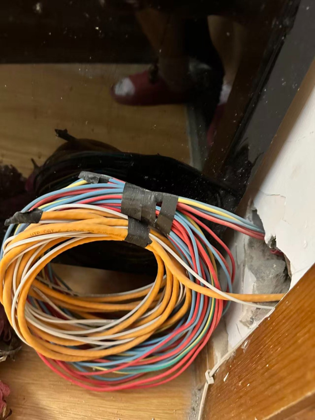 強(qiáng)行在乙方里屋鎖門,且主人不在情況下,穿墻打孔,屋內(nèi)踢腳線打壞,強(qiáng)行預(yù)留網(wǎng)線50多米,更換強(qiáng)弱電箱,強(qiáng)行收費(fèi)1500元。我裝修區(qū)域不到15平。