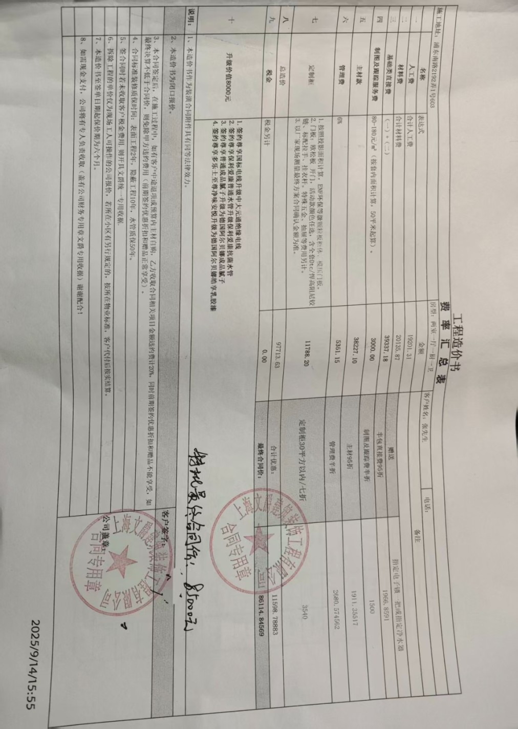 我于2025年9月14日和上海文爵建筑裝飾工程有限公司簽訂了裝修合同,是土巴兔平臺推薦的,全包一共85000元,當天付了定金11248元,9月20日,項目管家于學紅進場開工,我又付了首期款20000元,期間就把舊墻鏟到紅磚,衛(wèi)生間的單墻重新調整了下,10月29日和設計師協(xié)商窗戶改成斷橋鋁材質的,超出了原預算,又讓我付了2334元,10月30日,水管和電線都排好了,讓我來驗收,我找監(jiān)理來驗收了,11月5日,按驗收報告整改過后催我打款,我又付了23000元,11月10日讓我去公司選瓷磚,11月23號項目管家電話說公司倒閉了,此時裝修進度還在水電結束沒動過,定制窗,瓷磚地板油漆櫥柜等都還沒做,錢已經(jīng)預付了,11月25日,去公司現(xiàn)場確認,負責人讓和項目管家結算退多少錢,和管家算下來要退39801元,11月27日又去和負責人談退錢的事,沒有明確解決方案,11月28日最后一次去公司找負責人,說是公司沒錢了,場地要退了就不了了之了,我就把臨時存放的家具搬走了,后面就沒下文了,這種行為就是詐騙。后來了解到這家公司是老賴公司了,上面欠供應商的貨款,下面欠施工隊的工錢,中間還吃裝修業(yè)主的錢,上下游都吃,所以公司和法人一直在換名字,從萬榮章,萬江榮,吉美蘭,名字從章筑,文爵,楚水還在營業(yè)著,希望不要再坑害消費者了。