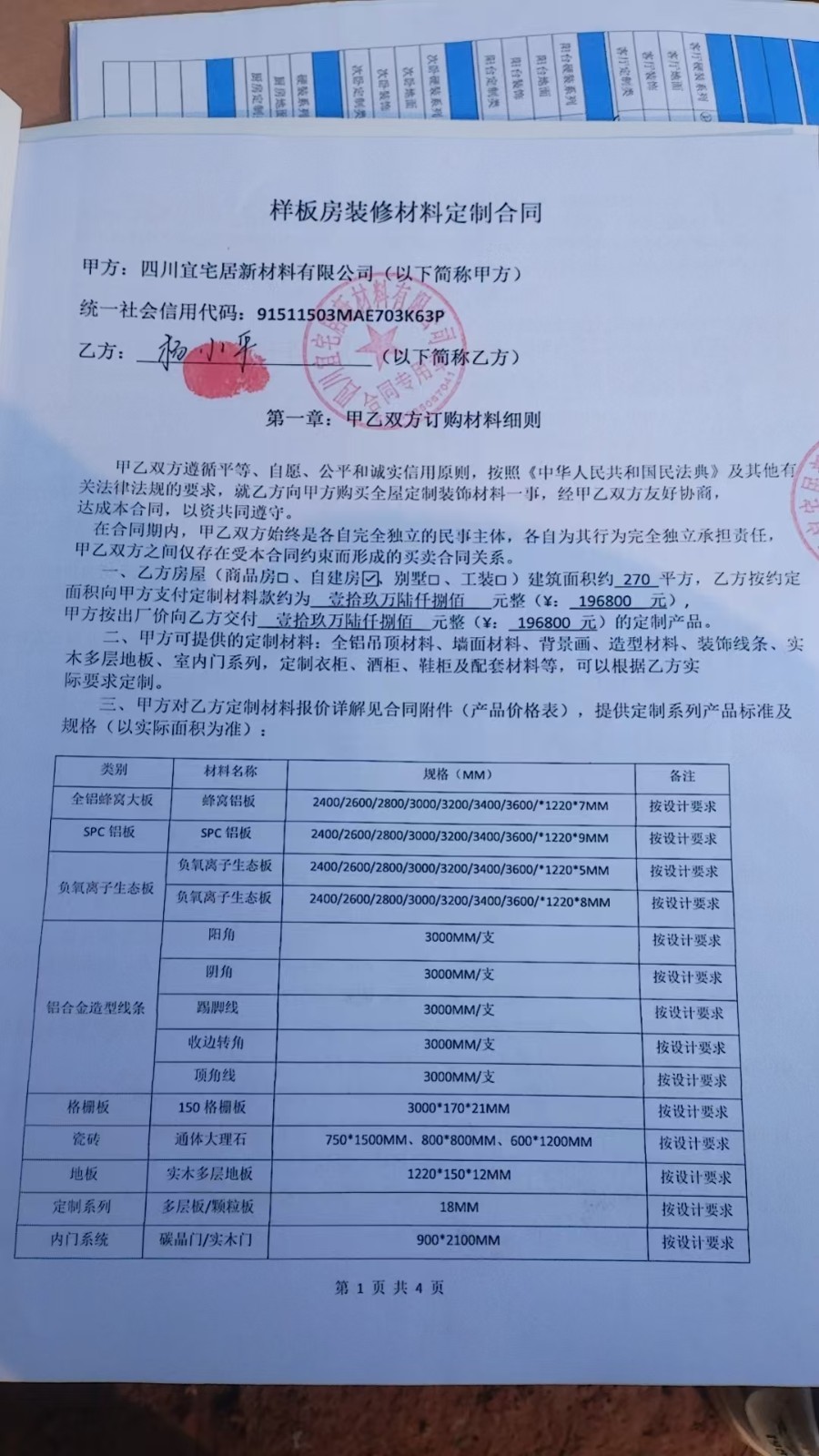 我要投訴 四川宜宅居新材料有限公司,銷售三無(wú)產(chǎn)品,我在抖音上看到他們的廣告,整屋裝修拎包入住,就留了聯(lián)系方式。他們聯(lián)系我去公司考察,過(guò)去以后就說(shuō) 就可以再送家具家電,交了錢就拿回來(lái)一份合同,我當(dāng)時(shí)就質(zhì)疑了,為什么要簽合同,他們說(shuō)就走個(gè)形式而已,答應(yīng)的一定會(huì)做到,回到家就發(fā)了一點(diǎn)材料,后面就不發(fā)貨了,價(jià)格翻幾倍,還是三無(wú)產(chǎn)品板材,沒有合格證,環(huán)保證明,批號(hào),現(xiàn)在要退回我的7.8萬(wàn)