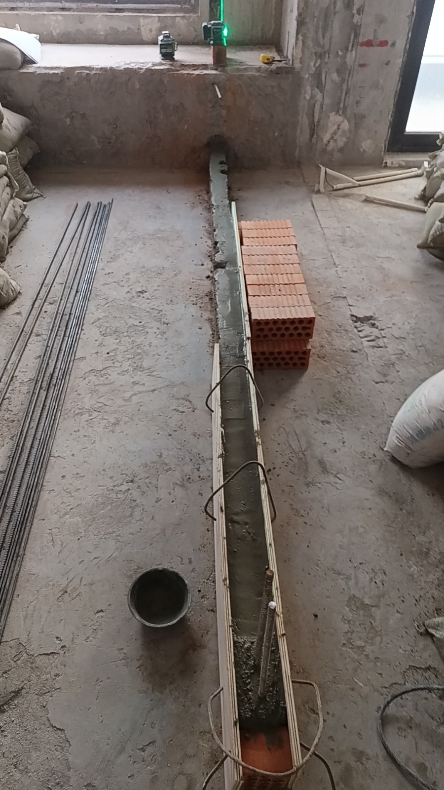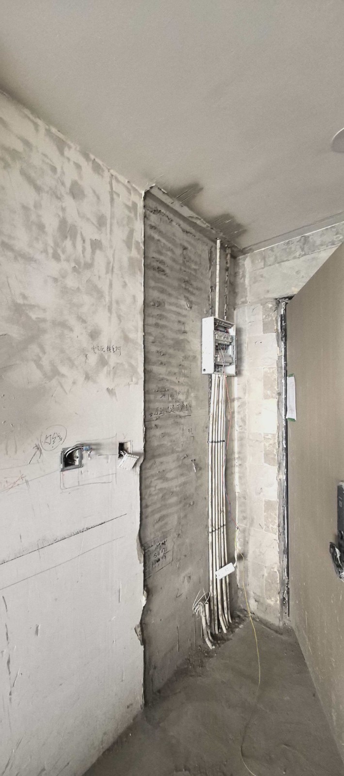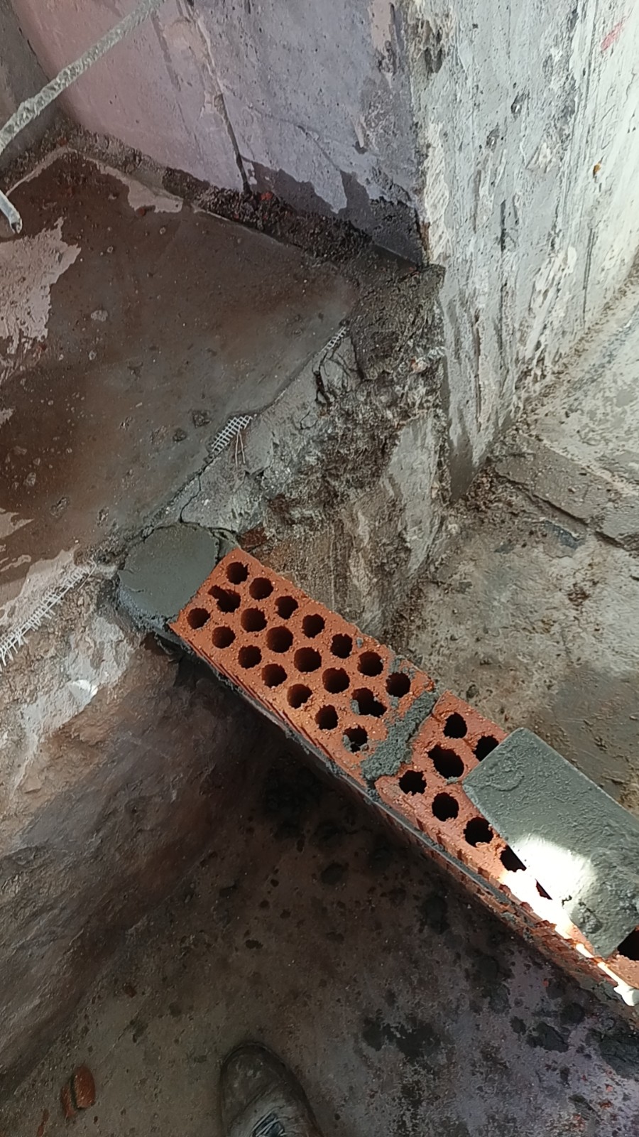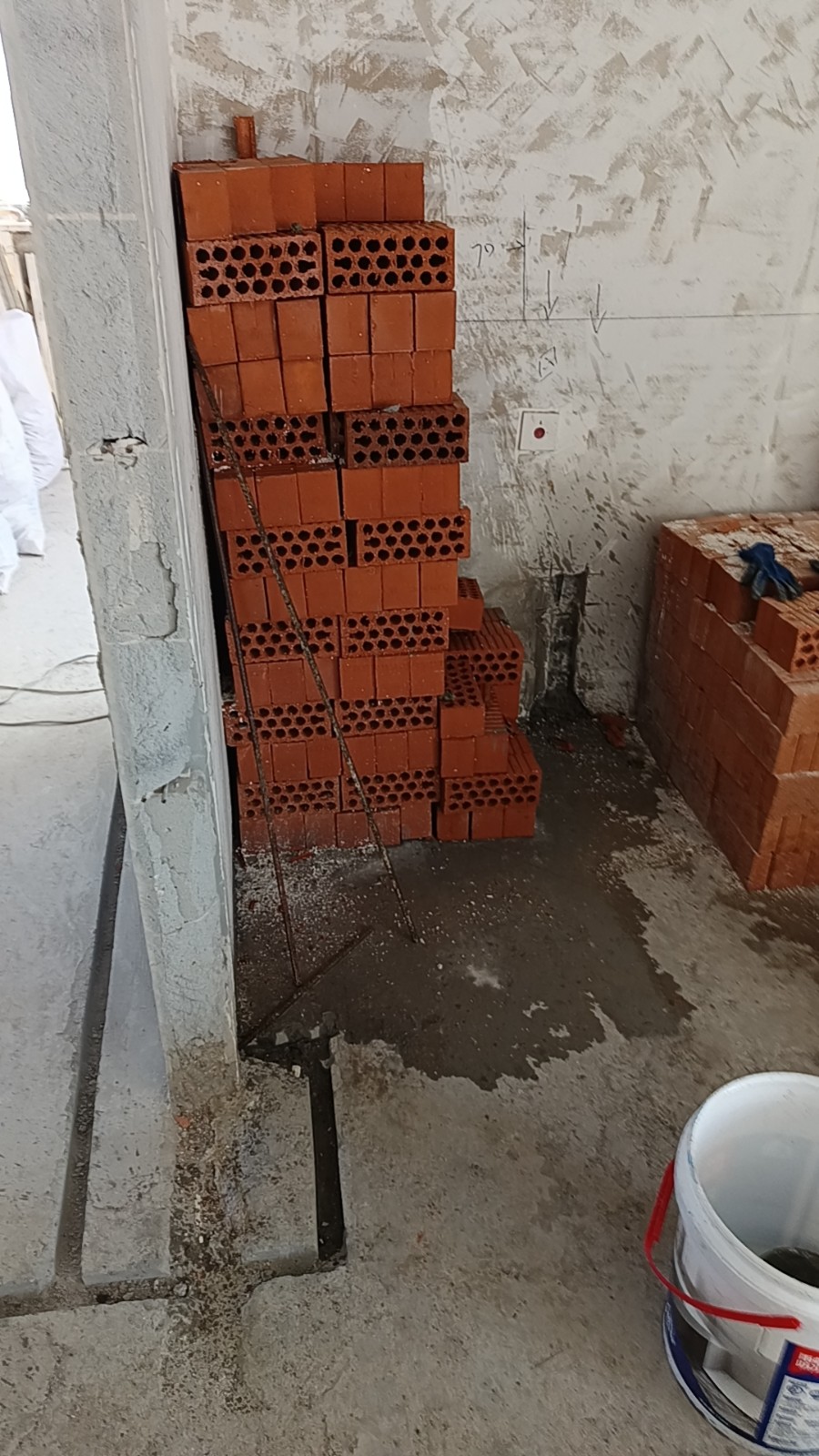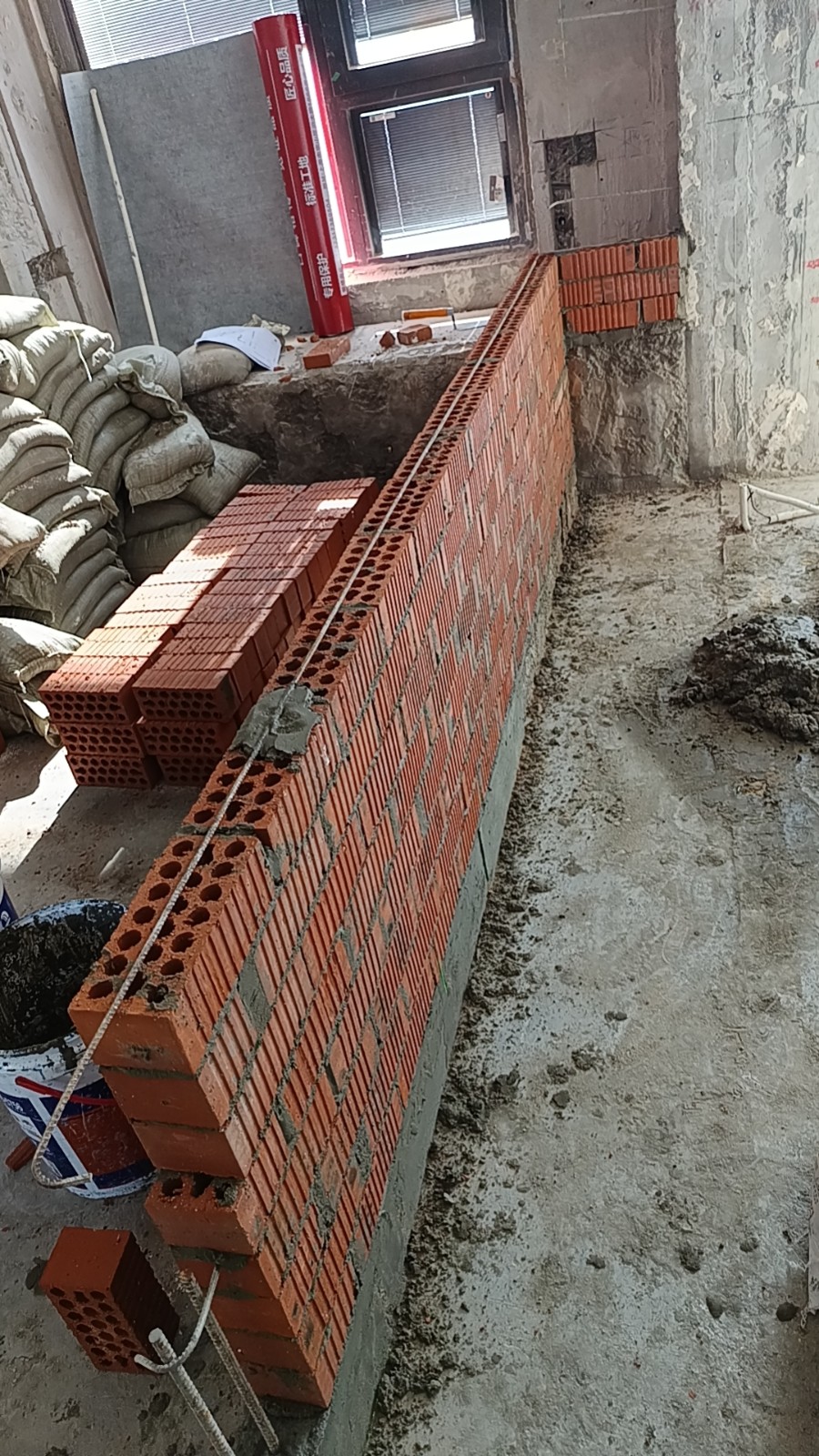 新砌墻階段,可以看到采用的是多孔紅磚混合鋼筋固定,這樣新砌的墻體更加牢固,因?yàn)槭切l(wèi)生間新砌墻,所以我們?cè)谄鰤χ笆紫茸隽朔浪亓汗に?,拆改階段即將結(jié)束,進(jìn)入水電階段,期待業(yè)主新家落地