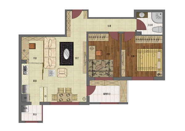 2、我們是一對年輕夫婦,以后家里會有老人和小孩,所以兩間屋子想全部裝修成臥室,面積并不是很大,希望可以充分利用有限的面積,盡量功能化。臥室風(fēng)格溫馨就可以了。