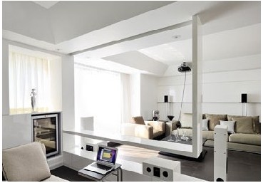 概要: 快節(jié)奏的生活使人們更渴望在家中得到徹底放松。而從色彩學(xué)上看,包括米白、米黃在內(nèi)的白色系列,能夠讓人心境平和,具有安全感。同時,白色在視覺上最讓人感到平穩(wěn)、大方、明快光亮,因此白色家居越來越受到人們的喜愛?! ≡拘蓍e室的空間并沒有太多的自然采光,在開放式的設(shè)計手法下,引入客廳的自然光源,讓休閑室也敞亮起來。 從休閑室看客廳,寬敞明亮。