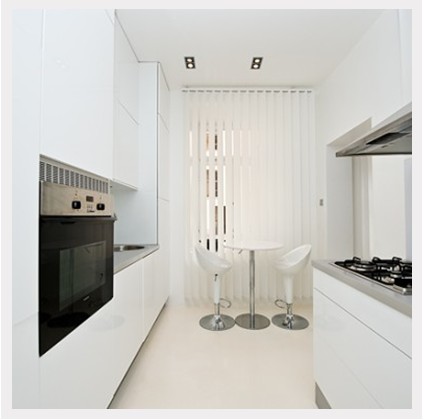 用射燈裝飾時(shí)尚廚房。在廚房中開辟出一塊供兩人用餐的溫馨區(qū)域。