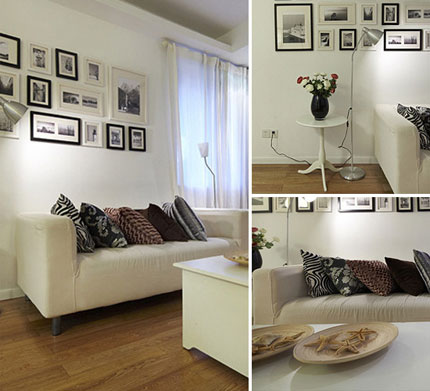 概要: 黑與白的搭配一直是永不退落的時(shí)尚潮流。小戶型的空間,裝修色彩復(fù)雜會(huì)添加空間的累贅感,有時(shí)候色彩的簡(jiǎn)潔比設(shè)計(jì)的簡(jiǎn)潔更能節(jié)省空間。 細(xì)節(jié)看下客廳的各個(gè)局部,以老照片來裝飾背景墻,很符合80后的情感。黑白照片是最初的回憶。抬腳的沙發(fā),易于衛(wèi)生清潔??蛷d里簡(jiǎn)潔的家具,給空間劃出很多留白,為后期生活帶來很多便利。