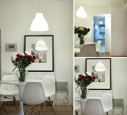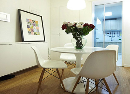 白色墻材、白色的餐桌椅,不怕再多加上幾件白色的家居用品,因?yàn)椴煌⒚娴牟牧显诏B加之后有了神奇的立體效果,而光影的變幻則會(huì)給人帶來豐富的感官效果
