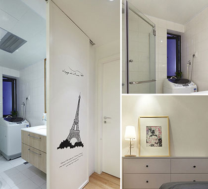 極致小戶型更重視衛(wèi)生間設(shè)計(jì),將洗潄臺(tái)與浴室相結(jié)合,很大節(jié)省了空間。