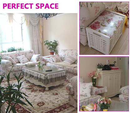 從玄關(guān)進(jìn)入看到的就是這樣一個(gè)美式田園風(fēng)格的客廳。從碎花布藝的沙發(fā)選擇到地毯花色的挑選,實(shí)木的茶幾……溫馨溢然,嫻靜。 很多時(shí)候,設(shè)計(jì)師不敢在小戶型的房子里做田園風(fēng)格,花朵圖案有時(shí)候會(huì)造成空間的累贅。