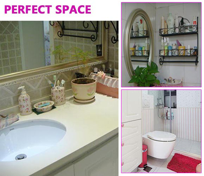 衛(wèi)浴間的裝飾非常簡潔,鐵藝的架子,白色的櫥柜,皆以實(shí)用為主,很有美式田園的味道。