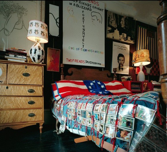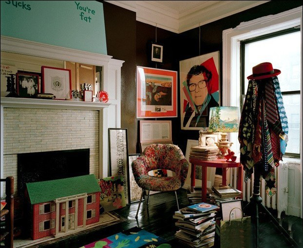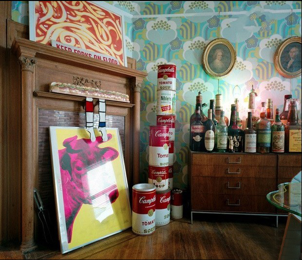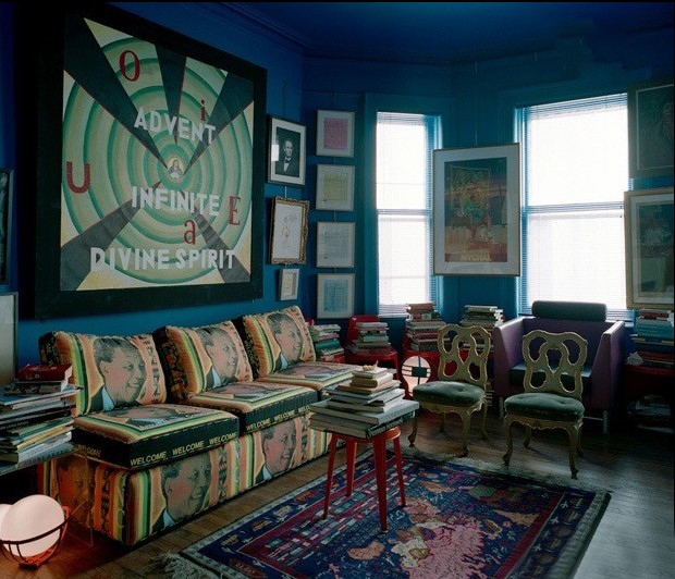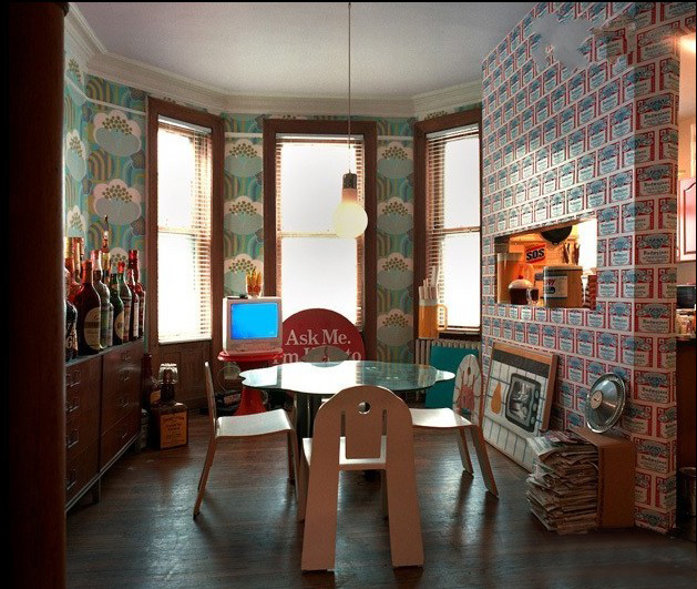 走進(jìn)這個(gè)藝術(shù)工作者的家,滿目驚艷。顏色鮮亮的壁紙和復(fù)古的吊燈成為了房間的主題,皇家風(fēng)格的扶手椅旁擺放各式書籍各類油畫……