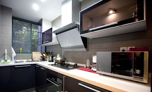 廚房是白色瓷磚搭配黑色柜臺(tái),簡約中不失時(shí)尚美感。