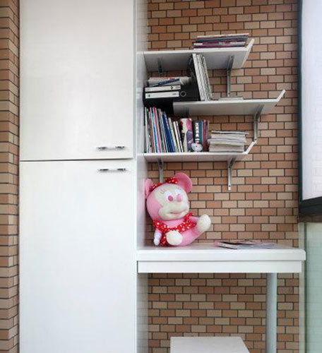 陽臺設(shè)計(jì)還不錯有個(gè)小書桌,用來看看書辦辦公很不錯。柜子、書架和書桌的組合很實(shí)用。