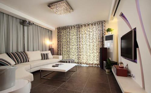棕色印花窗簾、地磚,搭配白色布藝沙發(fā)與茶幾,讓客廳頓時(shí)充滿了時(shí)尚大氣的美感。同時(shí)也讓家居充滿溫馨的感覺。