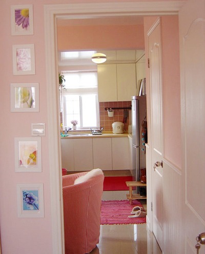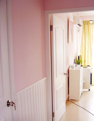 整個(gè)屋子都是淡淡的粉紫色,這里通往臥室的過道。