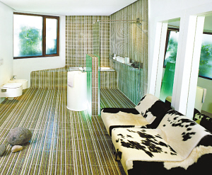 在大面積的衛(wèi)浴空間里,可以將功能細(xì)化。比如洗漱、化妝、沐浴、方便等功能,不以干濕來分區(qū),而是根據(jù)功能基礎(chǔ),強(qiáng)調(diào)以舒適性分區(qū)。大的衛(wèi)浴空間還應(yīng)加強(qiáng)室內(nèi)外溝通,使光線、視覺、空氣透暢,出現(xiàn)諸如陽光浴室、透明天棚、露天浴室等形態(tài)。 (陸剛,博洛尼家居集團(tuán)衛(wèi)浴設(shè)計(jì)師)