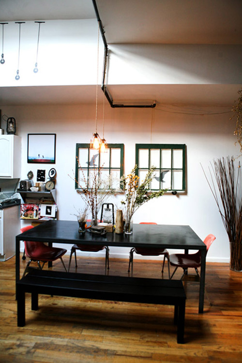 面積大一點的桌子可以招待來訪的親朋好友。垂下來的黃色燈泡搭配干花,一種英國田園的懷舊風(fēng)格就出來了。綠色的假窗還有小鳥的貼紙,進一步增加了對大自然向往的氣息。