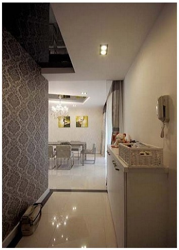 一個現(xiàn)代感極強(qiáng)的家居門廳,可以采用一些能表達(dá)時尚、前衛(wèi)的壁紙元素等。白色的瓷磚與棕色的印花壁紙,會給空間帶來無限前衛(wèi)而又寫意的趣味。同時,一個線面流暢的現(xiàn)代感十足的鞋柜,既滿足了門廳的功能需要,又與門廳的風(fēng)格極為協(xié)調(diào)匹配。
