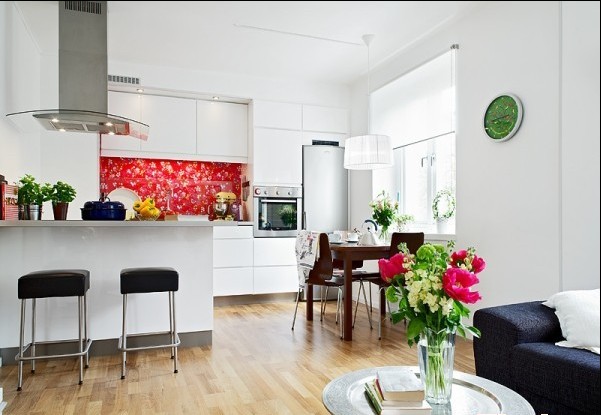 概要: 北歐式的風格里給我們印象多數(shù)都停留在那個陽光滿滿,通眼白色墻面的畫面里。生活如同交響樂有不同節(jié)奏的,或激動高昂,或平靜舒緩,在家居裝修色彩應用中,也不應該太平板單調(diào),這樣很容易出現(xiàn)疲勞感,用一些鮮亮的顏色點綴在白色中,不需太大面積,這樣就能保持生活的整潔。 這個不大的中戶型空間里,廚房及餐桌做在了一個空間里。