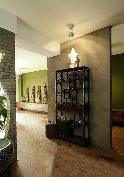 水泥墻面與白墻的完美相溶,帶有古典氣質(zhì)的裝飾品正好可以給中式裝修風(fēng)格作最好的點綴。