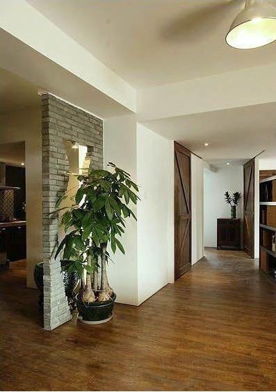 走廊里的綠植配飾配上磚砌墻面,墻外的那一點綠被搬到了房間里,是田園風(fēng)的表現(xiàn)風(fēng)格也達到了頂端。