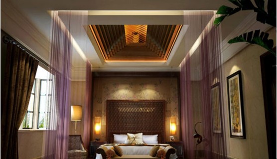 整個(gè)主臥圍繞新東方元素進(jìn)行打造;四邊的紗蔓猶讓人如入宮殿境界;