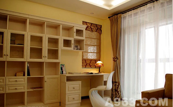 書櫥可以容納很多書,延伸出的書桌椅優(yōu)雅婉約,更美的是書桌上方窗外的風景。。。