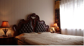 主臥床是古典的美式家具,頭層牛皮的高靠背配合精致手工雕花,體現主人對生活細節(jié)的追求。從臥室走到客廳,古典家具到現代氛圍,猶如穿越時光的電影情景再現。