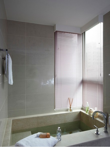 大理石堆砌的浴缸強調了實用與低調的主旋律;