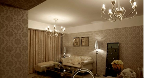 客廳沙發(fā)、墻紙圖案、吊燈采用新古典風(fēng)格樣式;幽雅的燈光讓人醉意朦朧。。。