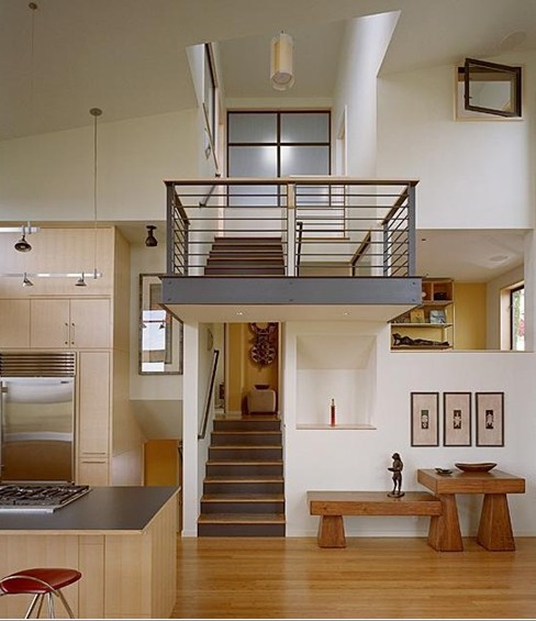 個性化設(shè)計錯層結(jié)構(gòu)的戶型感覺起來視覺通透,空間的立體感增強,因此錯層部位的處理尤為重要。