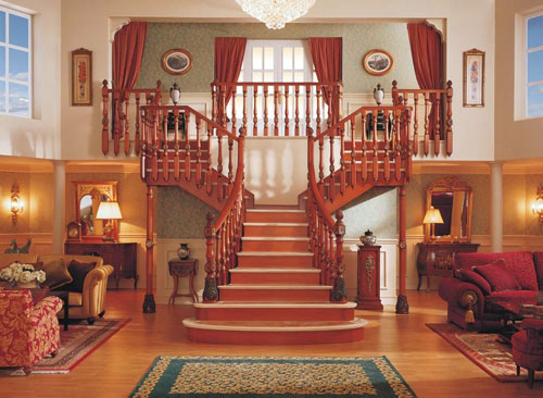 樓梯的所有部件應光滑、圓潤,沒有突出的、尖銳的部分,以免對使用者造成無意的傷害,試想一下,當女士們穿著裙子,飛天一樣地飄上樓去,前面走,后面卻給掛上了,會產生什么樣的視覺效果。同時樓梯的踏板要注意做圓角處理,避免對腳部造成傷害。 |