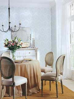 選圖案排列又可為居室營造出不同的裝修效果。色彩濃艷、炫目的大花朵圖案往往在遠(yuǎn)處就能吸引人的視線,逼真的花紋似有呼之欲出的感覺,這樣的壁紙最適合鋪裝在格局單一的房間,以降低居室的拘束感。而一些具有規(guī)則排列的碎花圖案的壁紙則可以用作居室的背景,讓自己喜愛的沙發(fā)、椅子在這個點點星花的背景映襯下盡顯其特色。