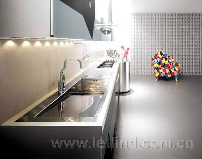 水盆:水盆是使用頻率很高的廚房用品,采用臺下盆設(shè)計使盆的邊緣低于臺面,防止了水的溢出,幫助臺面清潔,同時解決了邊縫難以清理的問題。