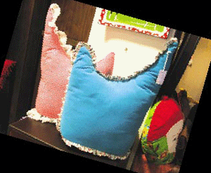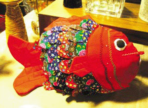 充滿(mǎn)鄉(xiāng)土氣息的魚(yú)形抱枕,象征年年有余。除了可以當(dāng)抱枕,還可以?huà)煸趬ι袭?dāng)掛飾。