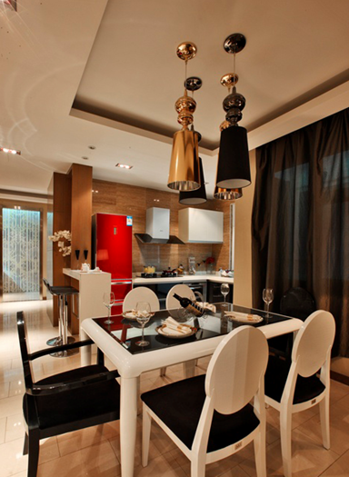 現(xiàn)代風(fēng)格是對(duì)古典的解放,現(xiàn)代的裝飾線條是簡(jiǎn)單明朗的,如同白色的餐桌的款式一樣--------大方;吊燈無(wú)疑是極至現(xiàn)代;