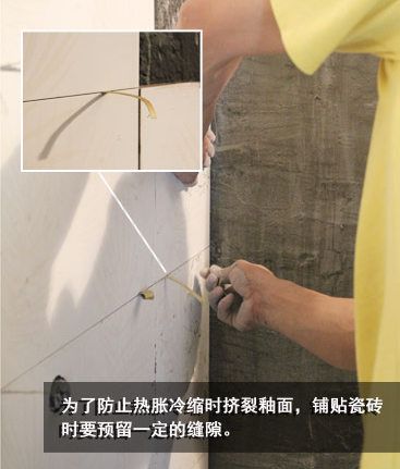 由于剛鋪貼的瓷磚,水泥未完全干固,容易受重力影響往下沉。因此,瓷磚貼上墻后,上下瓷磚之間必須預(yù)留一定的縫隙。磚與磚之間留有2毫米的縫隙, 如果保留的縫隙過小,熱脹冷縮時容易將釉面擠裂,減少瓷磚使用壽命。以減弱瓷磚膨脹收縮所產(chǎn)生的應(yīng)力。轉(zhuǎn)角時,陰角磨邊先用玻璃刀劃出要磨掉的釉面,以免崩瓷,影響美觀。有時候為達(dá)到一定的藝術(shù)效果,采用錯位鋪貼,錯位鋪貼留意在原來留縫的基礎(chǔ)上多留1毫米的縫。
