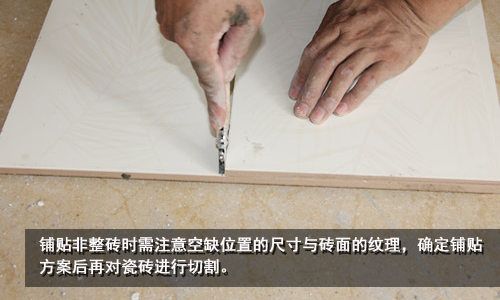 鋪貼非整磚時,首先測量空缺位置的尺寸,根據(jù)瓷磚數(shù)量與磚面的紋理來確定排磚方式,再對瓷磚進(jìn)行切割。對于一些紋理不明顯的的瓷磚,如微粉磚,鋪貼時要注意其方向性,以免搞得墻面雜亂無章。經(jīng)由切割的瓷磚,應(yīng)鋪在角落不顯眼的地方,且切面朝里。盡量避免貼在墻面中心,影響美觀。如不能回避,切面應(yīng)保持工整,切忌爛邊?!∵x擇水泥的時候,水泥的硬度不能高于400#,以免拉破釉面,產(chǎn)生崩瓷。如碰到異常情況,應(yīng)馬上和供給商聯(lián)系。釉面磚美觀大方、顯得高貴典雅,而且又易于清潔、保養(yǎng),但它怕酸、怕水、怕污漬。