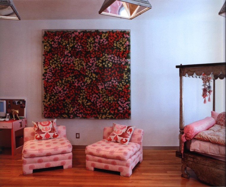 這是一個(gè)兒童房的設(shè)計(jì),貼心的矮幾粉色沙發(fā),是某品牌特地為小朋友而打造的。小公主的父母為了小公主更好的生活,極盡其能地打造了這個(gè)公主房。兒童房?jī)?nèi)所有的家具都是小小的,小小的復(fù)古床,小小的粉色沙發(fā),小小的書(shū)桌小椅……從色彩上說(shuō),粉色系可以突顯出兒童的天真爛漫,還可以培養(yǎng)小朋友陽(yáng)光的性格。小公主最愛(ài)賴在沙發(fā)上聽(tīng)爸爸講故事,背后那幅大水晶畫(huà)夜晚在燈光的折射下閃閃多彩。粉色的小沙發(fā),也是小一號(hào)的靠墊還有粉色的床品。這個(gè)都是粉色世界,兒童房?jī)?nèi)大量運(yùn)用粉色系,也可以增加空間的俏皮感,粉色系調(diào)和著空間的整個(gè)色彩搭配,烘托出溫馨還有小小的浪漫氣氛哦。