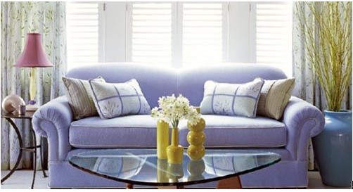 明媚的室內(nèi)環(huán)境,印花窗簾,打破紫色的暗淡。添加白色調(diào),某些區(qū)域注入更明亮的色調(diào)來搭配紫色,讓居室保持著紫色的清透淡雅。