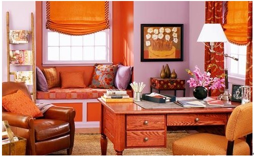 書房紫色與橘紅色的撞擊,與眾不同的色調(diào)搭配,創(chuàng)造出一個另類的書房空間。橘色的大量運用,與紫色墻壁相得益彰,活潑的圖案印花與飽滿的酒紅色交錯,營造出溫暖明亮的居室氛圍。飄窗處橘紅色墻面強調(diào)了陽光和陰影,形成漂亮的反差效果。天鵝絨和繩絨線的靠枕,對房間色調(diào)的多樣化做出了很好的點綴,淡紫色投影增亮了房間,把飄窗刷成紅色令帷幔與紫色調(diào)平衡,將多種色彩貫穿融合。
