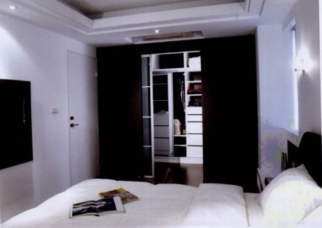 都市白領(lǐng)的工作都忙碌的,鑒于業(yè)主的工作原因。本案的特別重視紓壓設(shè)計(jì),這一點(diǎn)特別體現(xiàn)的臥室上。設(shè)計(jì)師縮小一個(gè)房間,讓主臥變大,床屋劈面以鐵灰色噴漆為底,讓黑色電視屏與之呈現(xiàn)多層次色彩。具大量收納空間的更衣室,門片用輕巧的鋁件搭配鐵灰色噴漆,與劈面色彩相互呼應(yīng)。干濕分享的主浴,用清秀的強(qiáng)化玻璃與鏡柜設(shè)計(jì)讓空間放大。依屋主需求增加的客浴,特別選用嵌入劈面的馬桶,上方為收納鏡柜。